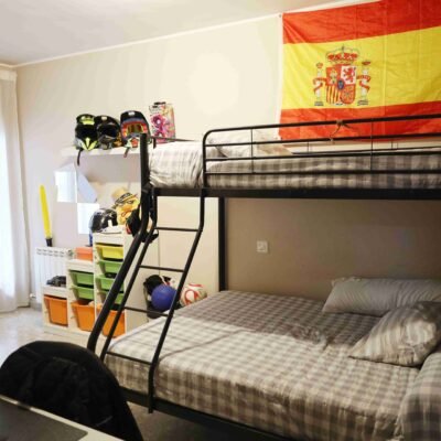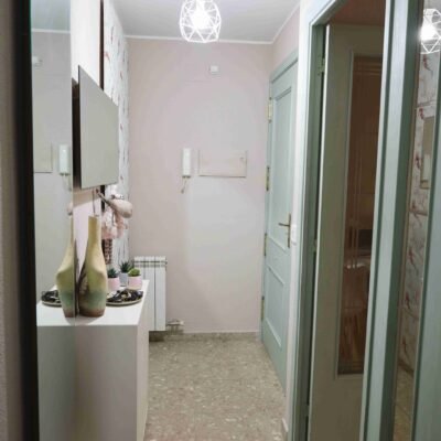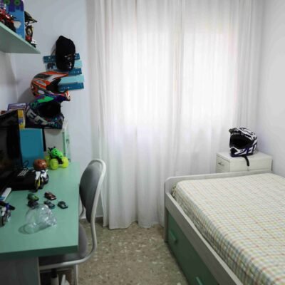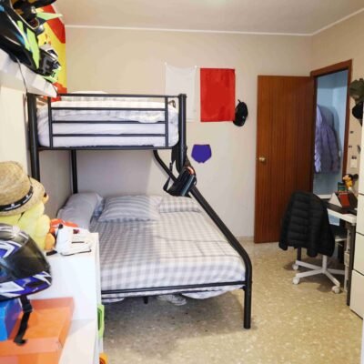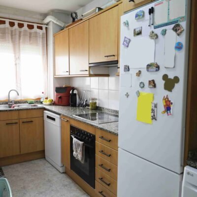 La vivienda consta de vestíbulo, salón-comedor con balcón, cocina independiente, un dormitorio simple y dos dobles (uno de ellos con balcón), baño completo con ducha y garaje «raya».
