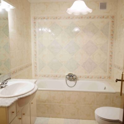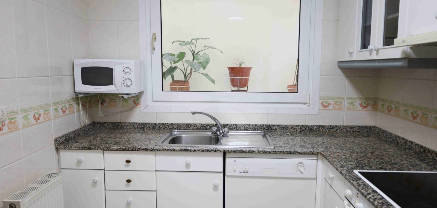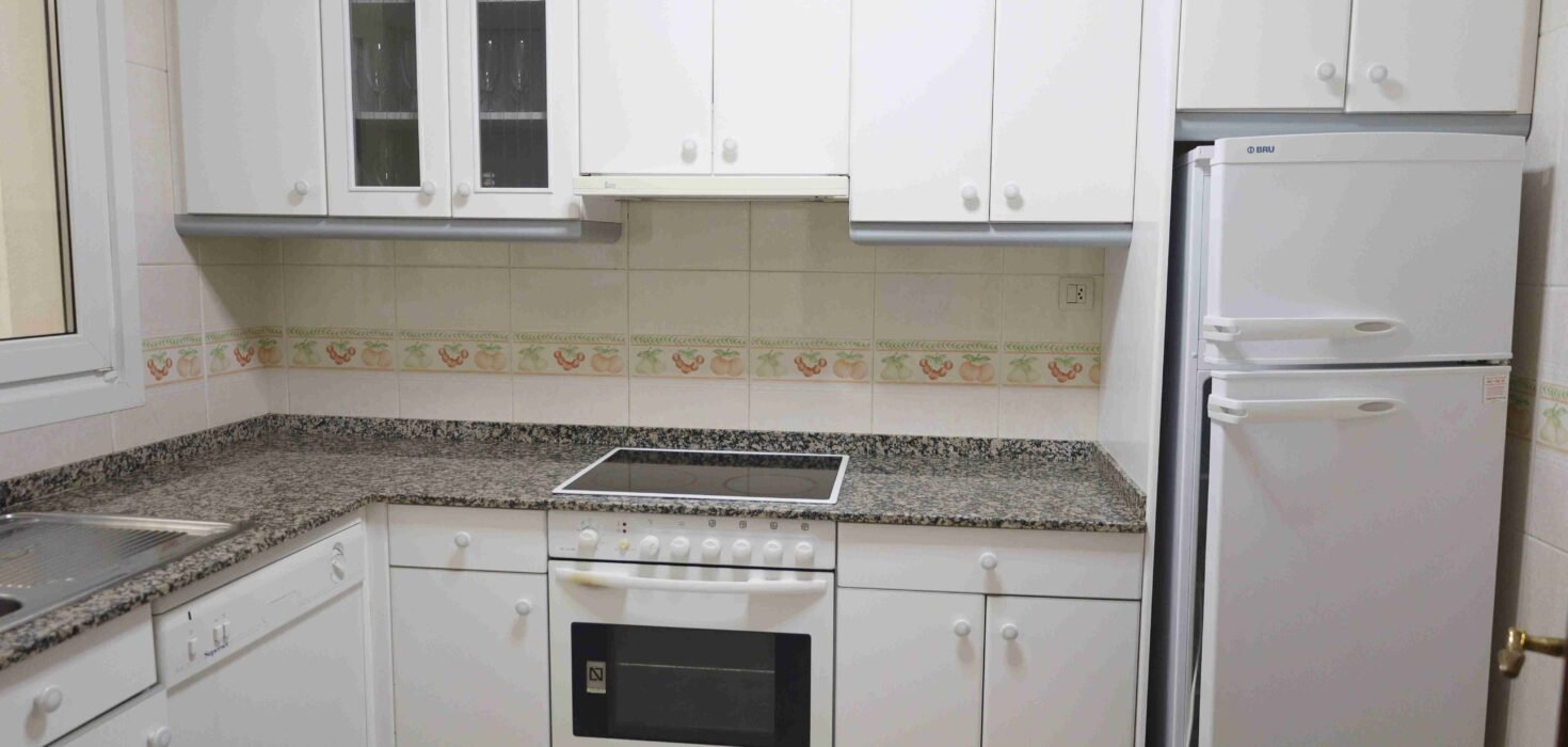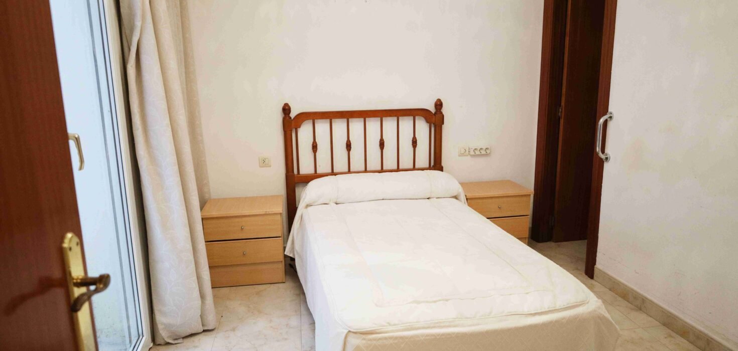 La vivienda consta de comedor-salón con balcón, cocina independiente, baño completo con bañera, sala de lavandería y tres dormitorios (uno doble y dos simples «uno de ellos con baño privado»).